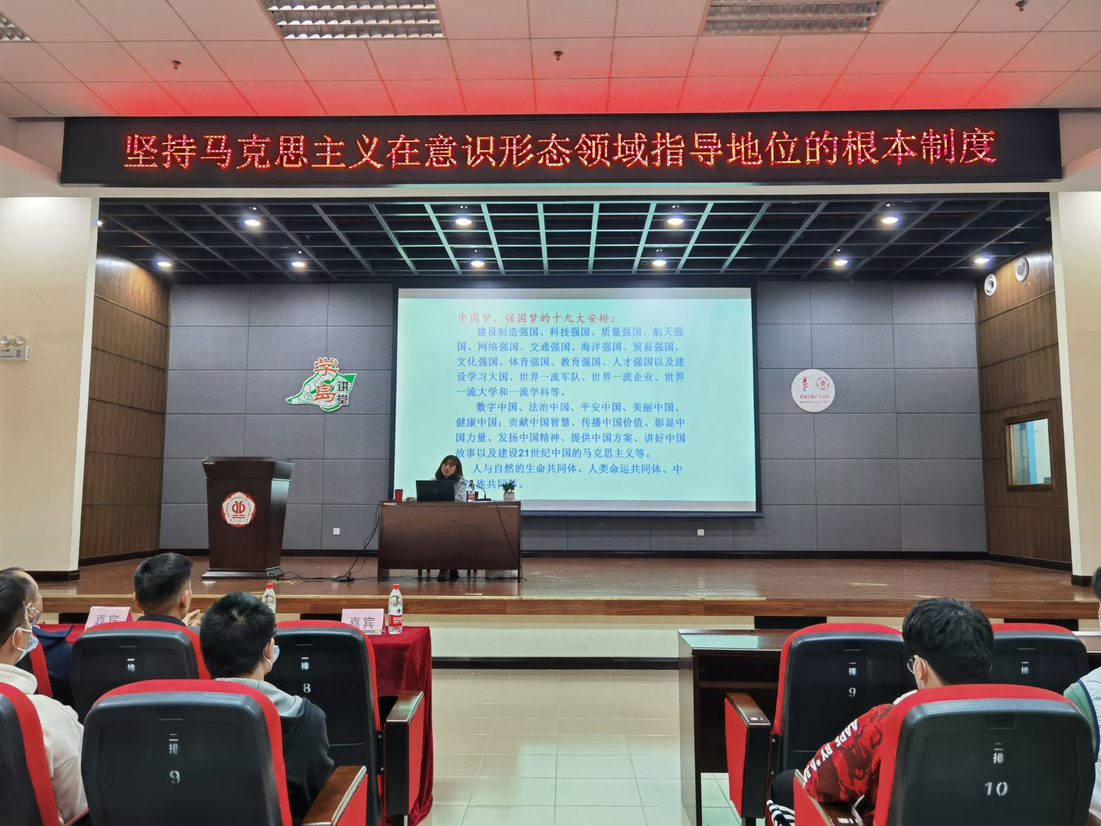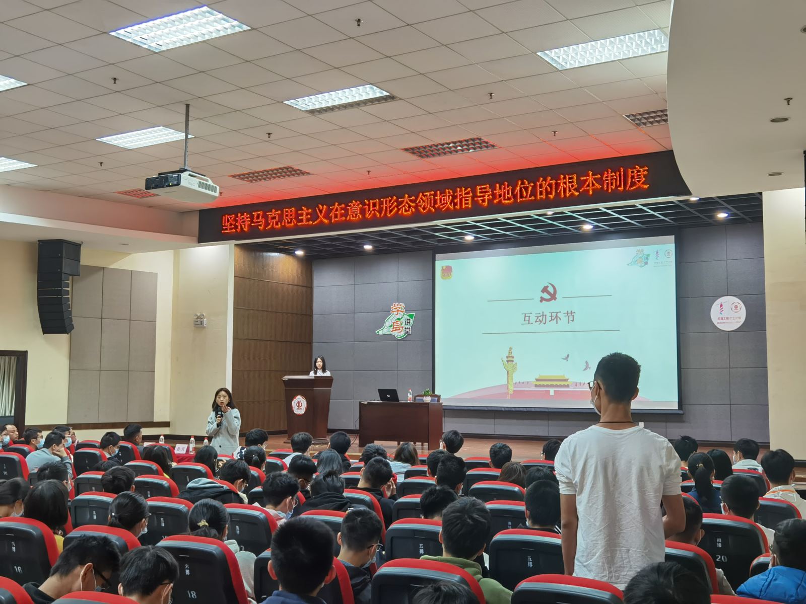 讲座从立足历史脉络,讲述马克思主义产生、发展背景及马克思主义中国化的进程。同时,结合国际关系和中西抗疫的制度比较,凸显国家治理制度和国家治理体系之所以显示出强大生命力和巨大优越性,进以论述马克思主义中国化时代化大众化的时代意义;在此基础上,学懂弄通做实习近平新时代中国特色社会主义思想,将意识形态安全置于国家安全的重要位置,把应对意识形态领域风险挑战作为直接关系党和国家前途命运的重大问题。她鼓励广大青年学生要弘扬英雄情怀和爱国主义情感,自觉抵制西方“普世价值”等错误思潮的侵蚀,坚持马克思主义在意识形态领域指导地位的根本制度;她勉励广大青年学生要珍惜时光,多读书,读好书,从书本里面汲取有用的精神营养,勇做担当复兴大任的时代新人。