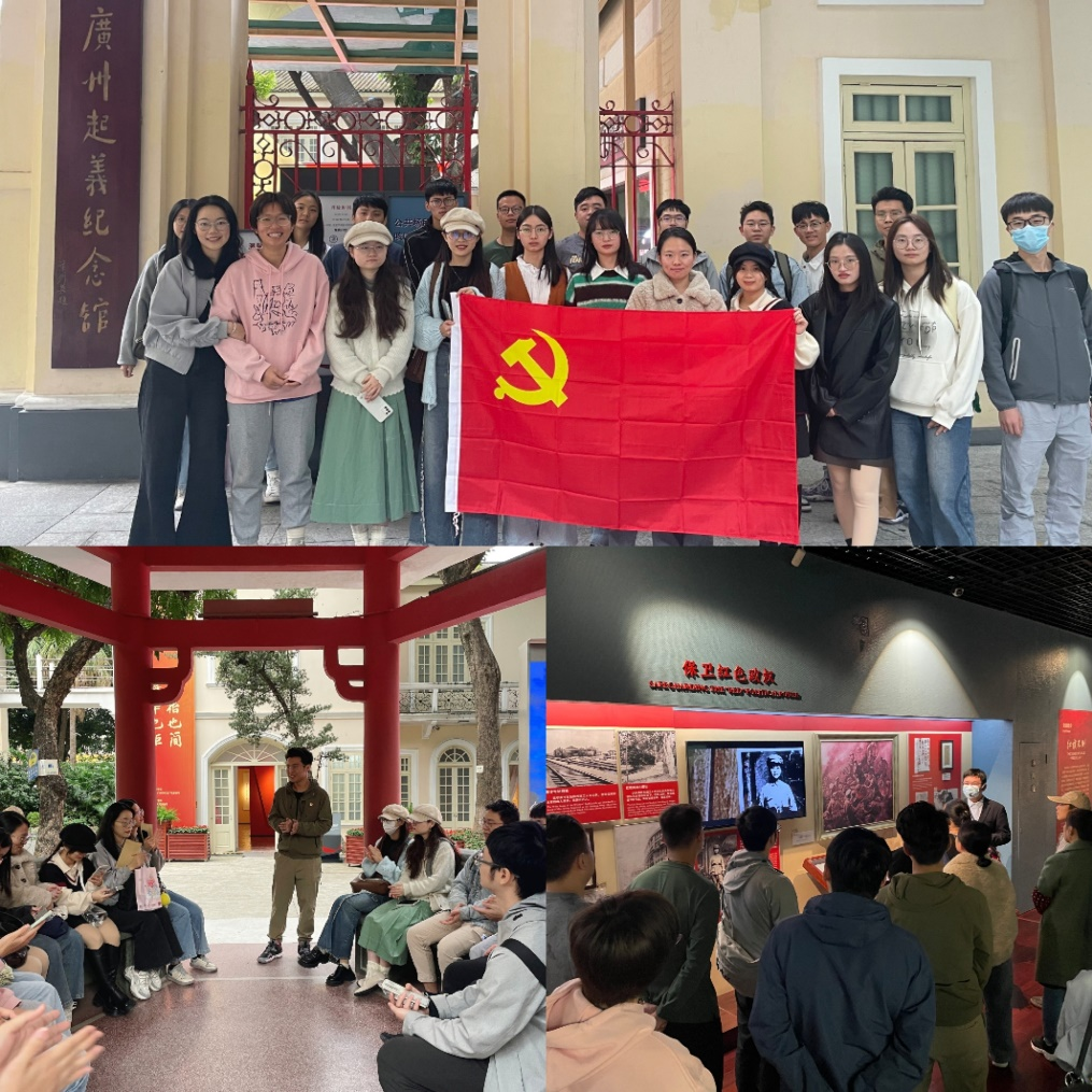 为进一步弘扬爱国主义精神,推动学习贯彻习近平新时代中国特色社会主义思想主题教育走深走实,2023年11月,我院学生党支部开展“传承红色基因,坚定理想信念”主题党日活动,组织学生党员赴广州市红色教育基地开展沉浸式党史学习以及集中观看红色电影,共同传承革命精神,厚植家国情怀。