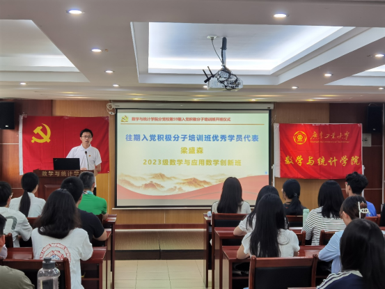 开班仪式结束后,林良盛书记为学员们讲授了题为《坚定理想信念 永远跟党走》的专题党课。他从“入党问题”出发,通过基础的理论知识和丰富详实的党史案例,引导大家从“理论视角”和“历史维度”深刻认识中国共产党是马克思主义政党,号召学员们坚定马克思主义和共产主义信仰,增强对中国特色社会主义的信念,增强对实现中华民族伟大复兴的信心,练就过硬本领,坚定不移听党话、跟党走,争做有理想、敢担当、能吃苦、肯奋斗的新时代好青年,在中国式现代化建设中勇立时代潮头,争做时代先锋。