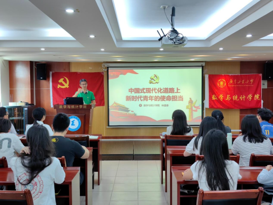 林逢春副书记则为学员们分享了题为《中国式现代化道路上新时代青年的使命担当》的辅导报告。他聚焦“中国式现代化”这一核心概念,重点介绍了党领导人民接续奋斗的伟大历程、广大青年在中国式现代化进程中的先锋作用,同时寄语我院学子应当增强责任意识,努力提升能力素质,并强化纪律意识,以数智赋能大湾区高质量发展,为数字湾区建设培育新质生产力蓄势赋能,汇聚青春力量助力中国式现代化。