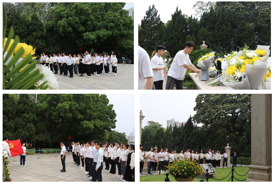 清明追思英烈,薪火代代相传。为深入贯彻落实习近平总书记关于弘扬英烈精神、传承红色基因的重要指示精神,扎实开展深入贯彻中央八项规定精神学习教育,引导全体党员、干部进一步锤炼党性、坚定理想信念,4月8日下午,我院组织师生党员、入党积极分子及学生干部代表共计50余人赴广州市黄花岗七十二烈士墓园开展“缅怀革命先烈 赓续红色血脉”主题党日活动。