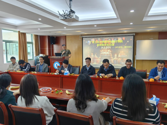 在轻松愉悦的氛围中,大家一同分享香甜的生日蛋糕。烛光摇曳,寿星们闭上眼睛默默许愿,现场仪式感满满,充斥着温馨与感动。每位老师都结合生日会主题,分享了自己生活和工作的感受,共同祝愿美好未来。寿星老师感慨道:“平日里忙于教学科研,很少有机会和同事们这样相聚和交流。通过这场生日会活动,真切感受到学院的关怀,也拉近了大家的距离,在工作之余感受到满满的幸福感。”