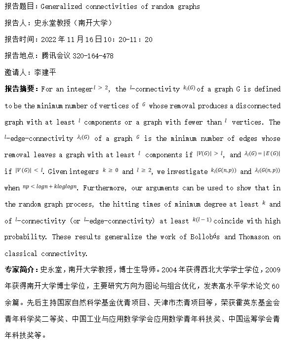 学术论坛:南开大学史永堂教授学术报告(11月16日)