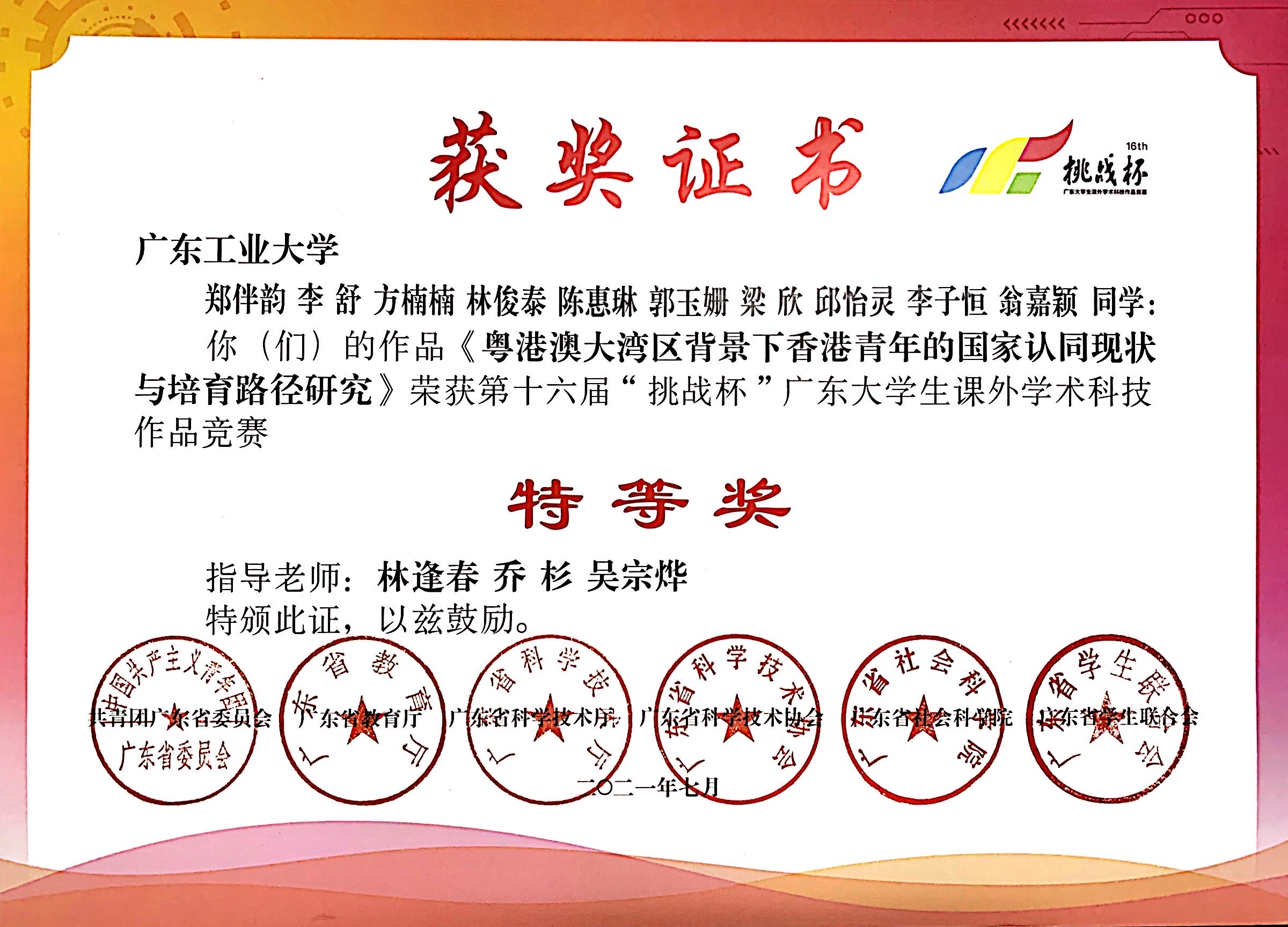 2021年全国大学生数学建模竞赛中,学院共组织全校301支队伍(共900名学生)提交竞赛论文参赛,参赛同学主要来自学校的15个学院,喜获历史最多的184项省级以上奖项的优异成绩,其中国家一等奖2项(全国获奖率为0.64%),国家二等奖6项(全国获奖率为2.6%)。2件本科生团队作品分别荣获第十六届“挑战杯”省赛总决赛哲学社会科学类和自然科学类特等奖。潘榕、曾川紫、庄依洁等同学分别荣获第六届“星耀工大·筑梦成长”十佳大学生、党员之星、学业之星等16项荣誉称号。