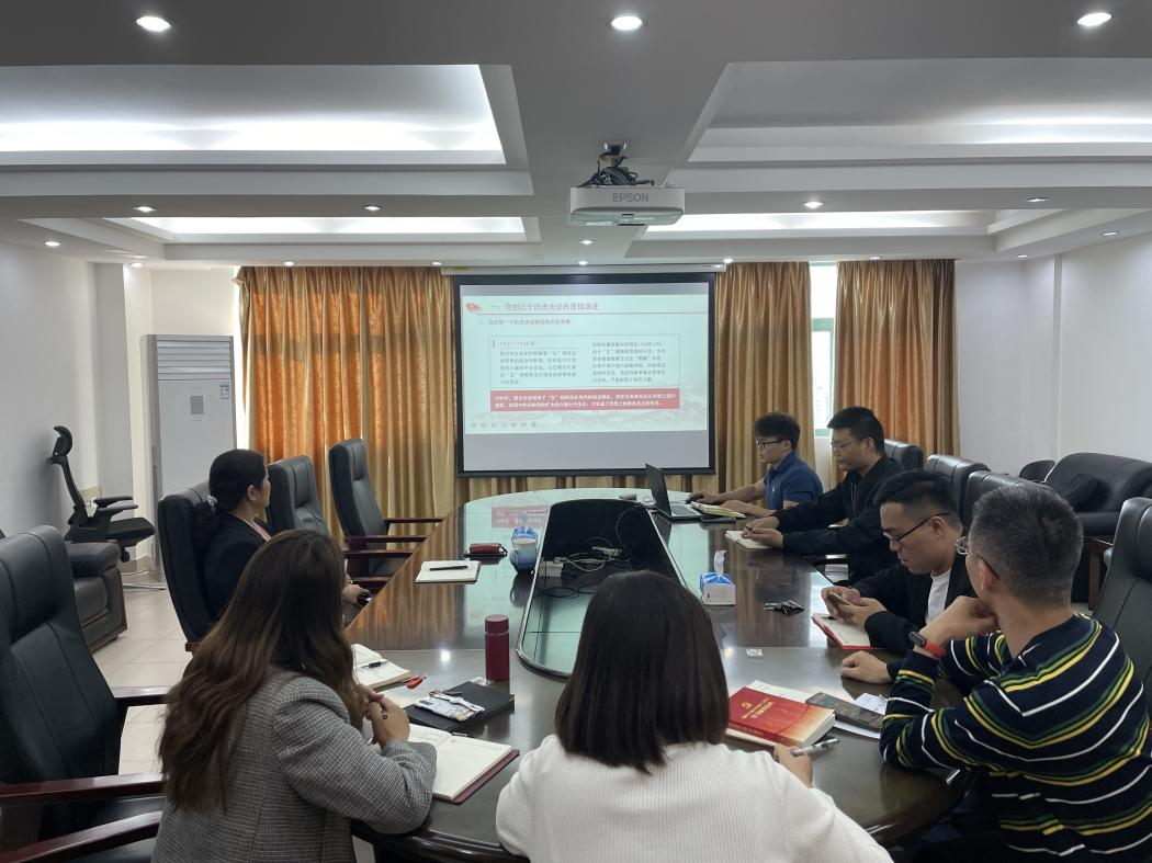 1130日下午我院办公室党支部在龙洞校区行政楼511会议室召开学习贯彻党的十九届六中全会精神专题学习会。支部党员参加了专题学习研讨,畅谈学习体会。