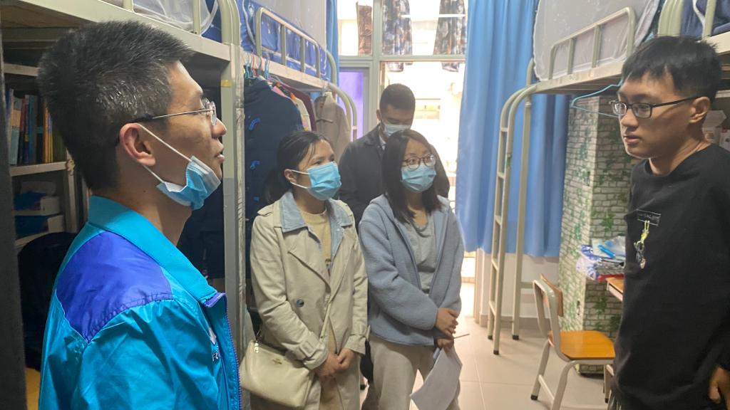 走访过程中,林逢春副书记和几位老师亲切地与同学们进行亲切交谈,了解同学们春季返校行程、寒假安排和生活需求,并提醒同学们注意用电安全问题,防止网络诈骗,鼓励同学们提早调整状态迎接新学期的学习生活,增进同学间的交流。
