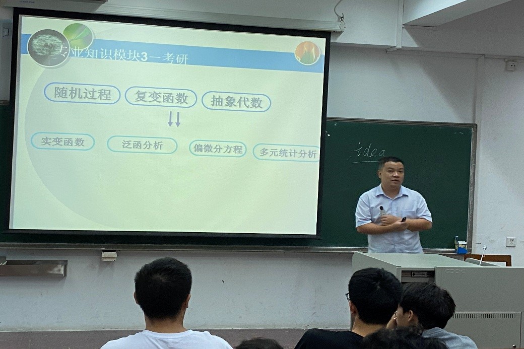 数学与应用数学系系主任张丽丽老师、信息与计算科学系系主任辜方清老师与应用统计学系系主任金应华老师则先后为2020级新生开展专业认知教育与职业生涯规划主题讲座。
