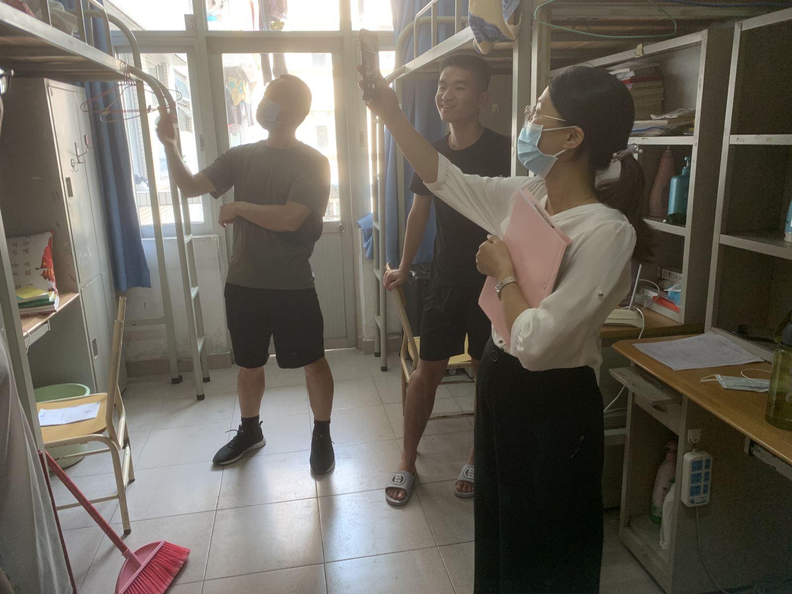 29日下午,林逢春副书记携班主任李锋老师、全体辅导员深入学生宿舍,通过走访、问询及谈心谈话,充分了解学生普遍关心和关注的热点问题,掌握学生在返校后宿舍卫生、学习生活等方面的实际需求及遇到的困难,并给予关心和回应。老师们通过与学生的亲切交流,一方面叮嘱同学们要保持良好的卫生习惯,做好科学防护,理解与配合学校、学院做好疫情防控工作;一方面也鼓励同学们要积极调整状态,并适当通过参加体育锻炼,增强体质,以良好的精神状态投入到新学期的学习生活当中去。