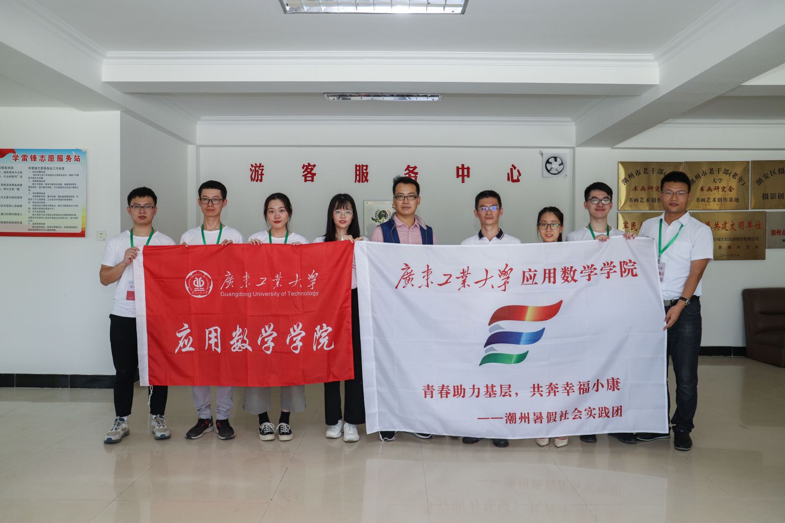 2020年7月26日上午,广东工业大学应用数学学院与广东绿太阳股份有限公司举行共建大学生社会实践基地揭牌仪式。绿太阳景区蔡一宇董事长等相关负责人、校团委许泽浩书记、应用数学学院党委林逢春副书记、辅导员徐超老师、乔杉老师及学院社会实践团学生共同参加了本次仪式。
