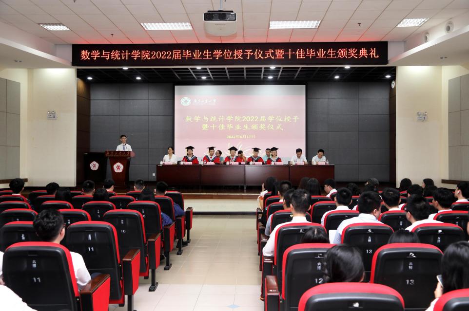 接着,学院对2022届优秀毕业生进行表彰。岑达康等2人荣获优秀毕业研究生荣誉称号,关则潮等10人则荣获十佳毕业生荣誉称号。