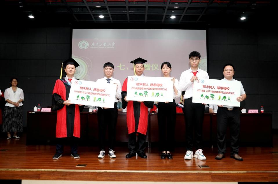 建设美丽广工是我院学子的行动自觉。毕业季,我院全体学生响应学校有关“捐植一棵树 母校一生情”的倡议,践行“绿水青山就是金山银山”的生态文明理念,捐赠三棵树木给母校,为建设美丽校园作出积极贡献。对此,在“感恩母校”的捐赠环节,学院领导接受了蔡建明、宋萌和黄泓辉等三位学生代表的美好献礼,彼此传递绿色发展理念,共同期待凤凰花开,共同期待我校教育事业如参天大树般茁壮成长。