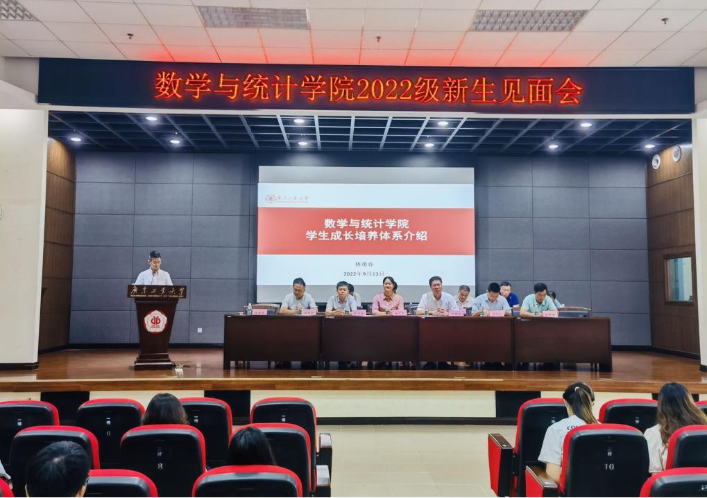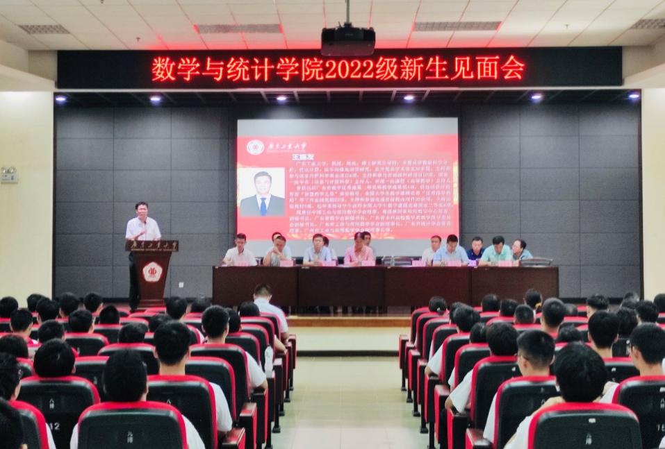 新生见面会在庄严的国歌声中拉开序幕。王振友院长首先对新同学的到来表示热烈欢迎,并向新生同学们介绍学院的历史沿革、师资、科研、学科与实验室发展及人才培养等基本概况。他向新生同学们阐释院训“厚德明理,博学创新”的意蕴,进而对新生提出三点希望:一是“认识大学学习的重要性”,制定好大学学习的“课程表”,坚定目标,培养数学思维,建立完整的专业知识体系,能够应用专业知识处理与专业有关的理论和实际问题,培养学生终身学习的能力;二是“努力完成大学的任务”,学会自主管理,做一个具备高尚的思想品德,高贵的科学品质,高端的数学品格,高雅的文化品味的人;三是“不留大学的遗憾”,作为新时代的新青年,就要勇立时代潮头,不负韶华,只争朝夕,专注学习,多参加有益的活动,用奋斗书写无悔青春。最后,他希望新生在广工培养传承优良品格,学以成人,与广东崛起共成长,为广东发展做贡献,肩负起民族复兴的时代重任,用奋斗刷出“青春存在感”,在奋斗中创造精彩人生,做一名合格的新时代奋进者,在青春的赛道上跑出当代青年最好的成绩!