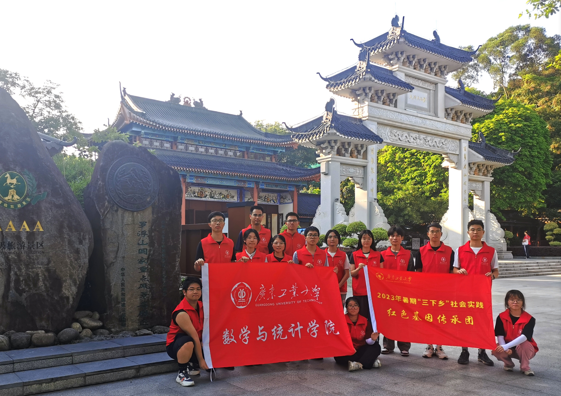 为深入学习宣传贯彻党的二十大精神,传承红色基因,赓续红色血脉,我院“红色基因•文旅传承”三下乡党员实践队于7月19日至23日赴惠州市博罗县开展社会实践活动。在辅导员李鑫和黄植萍两位老师的带领下,党员实践队一行十四人前往惠州罗浮山风景名胜区深入了解“绿水青山”与“红色文化”融合发展的现状,探索红色资源与旅游经济有机结合的路径方式,推动当地旅游产业高质量发展,助力乡村振兴战略。