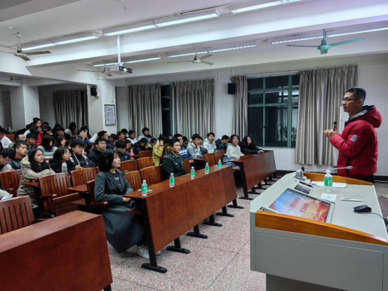 携笔从戎保家卫国,建功立业不负韶华。为积极响应强国强军号召,引导和鼓励大学生参军报国,我院于12月19日在教学楼202开展国防安全教育暨征兵宣讲会。学院党委副书记林逢春、征兵联络员李鑫、退役大学生代表倪卓妍、王泓尊和各年级学生代表参加本次活动。
