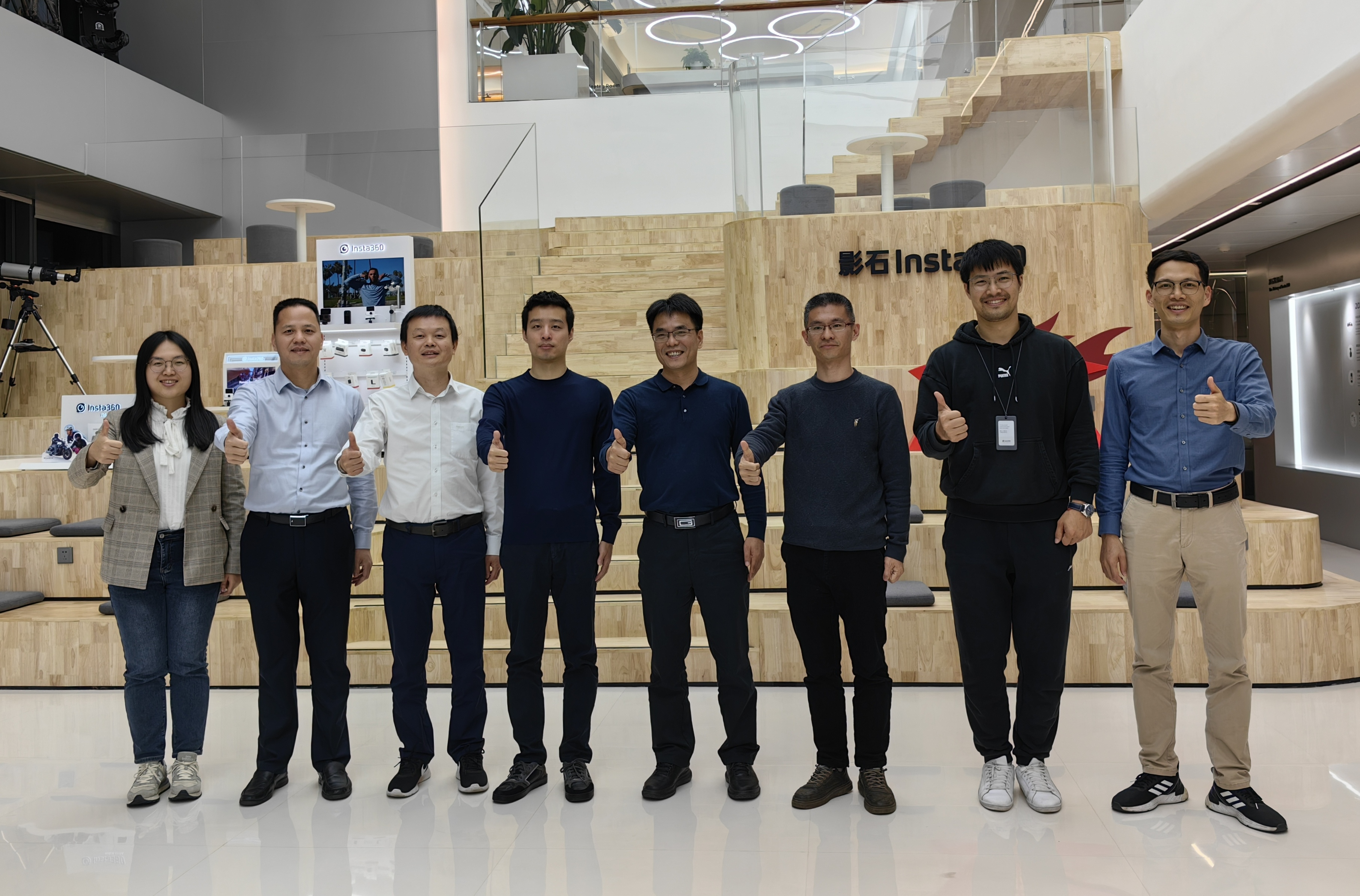 林良盛书记一行还参观了影石创新科技股份有限公司,并与公司联合创始人陈永强、行业产品负责人齐志宇进行座谈。陈永强创始人通过公司宣传片展示了其技术产品在文体艺术汇演、交通、社会治理等宽领域的应用场景,并介绍了公司的发展历程、主要业务、产品研发、核心技术与发展愿景。随后,双方就人才培养、校企合作等方面进行探讨。