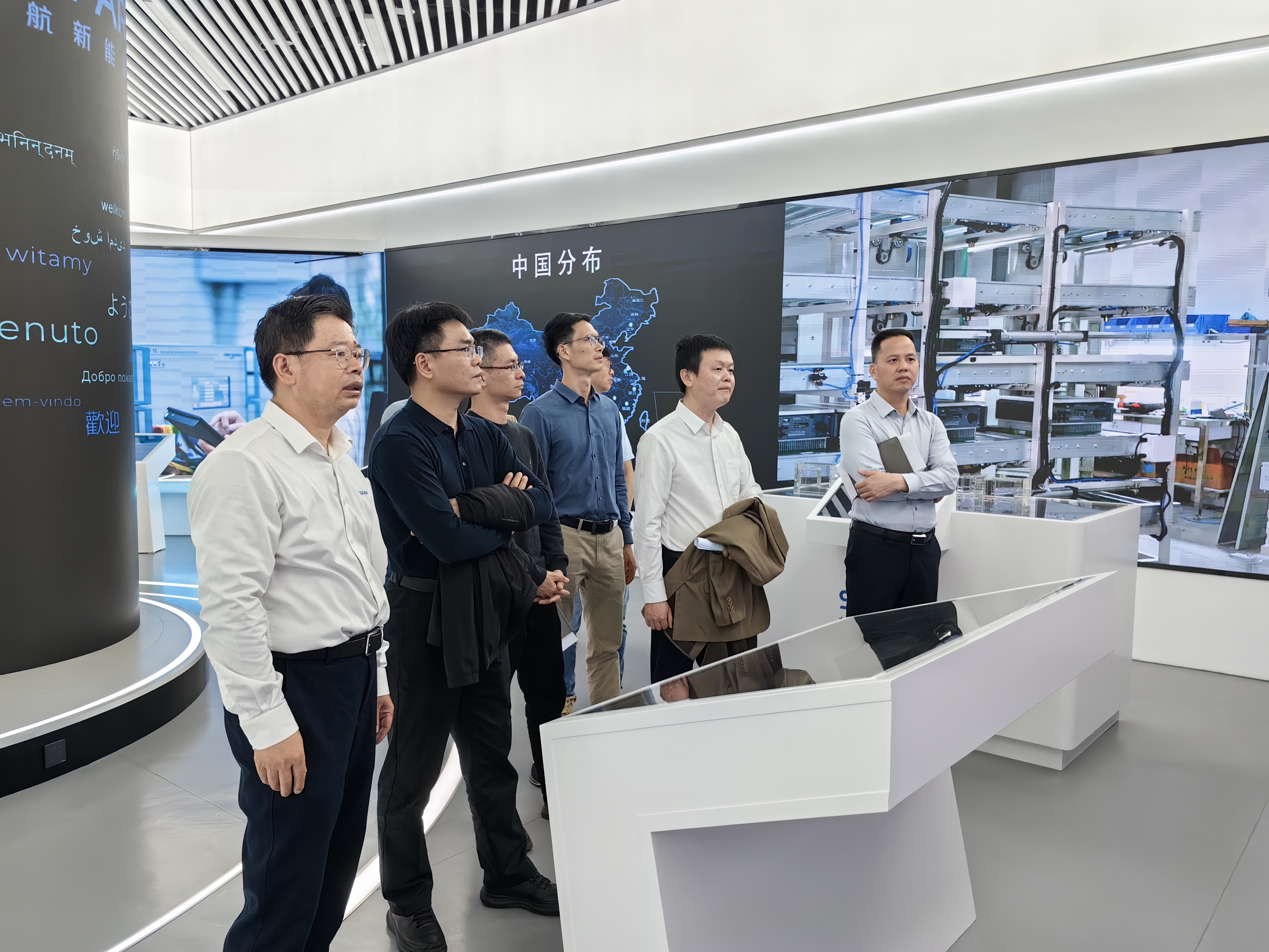 在深圳市首航新能源股份有限公司,公司高级副总裁舒斯雄带领大家参观公司的产品展厅并举行座谈会。舒斯雄高级副总裁介绍了公司的主营业务、产品类别、合作单位、团队构成、技术研发等方面情况,他高度评价广工毕业生所具备的认真务实、吃苦耐劳、好学上进等优点,希望校企双方在人才共育方面寻求合作生长点。林良盛书记介绍了学校的办学历史、学院的专业设置、学生培养、创新创业等方面情况,并指出,通过深入走访调研企业,可以更好了解企业的用人需求,获取我校毕业生用工反馈,有助于提高学校人才培养质量,推动就业的高质量发展。双方还就产学研合作、人才培养和就业招聘等方面进行深入交流。