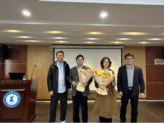 桃李满天下,春晖遍四方。会上,学院工会主席李锋代表学院介绍了温洁嫦、陈玉清、许君臣、邓志民几位荣休教师教书育人的点滴事迹,并感谢为学院教学和管理作出的突出贡献。荣休教师代表温洁嫦教授和陈玉清教授回顾了几十年的教学生涯,感恩学校学院和团队的支持,并鼓励年轻教师接过接力棒,站稳三尺讲台,为学院发展贡献力量。接着,林良盛书记和陈智奇院长为荣休教师颁发了荣休纪念牌和鲜花。