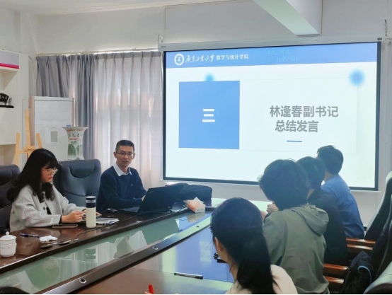 在总结环节,林逢春副书记首先肯定了各位老师、学术骨干过去一学期的努力和付出,他提出应该带着“问题意识”研判现有工作的难点堵点卡点,寻获破解方法;同时他也希望在座师生树立“协作意识”与“品牌意识”,同心同德,集思广益补齐工作短板,善于整合资源,形成合力,推动学院学生工作提质增效。
