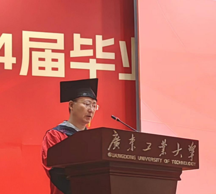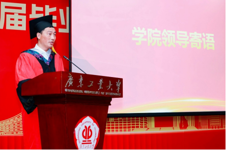 典礼在庄严的国歌声中拉开序幕。学院院长陈智奇教授回顾了同学们在校期间的点滴过往与亮眼的成绩,寄语即将踏上新征途的毕业生们: 老老实实做人、勤勤恳恳工作、快快乐乐生活。他希望同学们践行“厚德明理、博学创新”的院训精神,发扬“敢于拼搏,敢于胜利”的广工篮球精神,谱写属于自己、属于数学人、属于广工人的辉煌。他表示,“一日广工人,一生广工情,母校永远是同学们坚实的后盾和温暖的港湾,欢迎各位毕业生常回家看看,关注学校动态,支持母校发展”。
