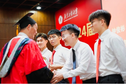 研究生毕业生代表宋萌同学回顾自己攻读研究生期间的收获与成长,对学院领导老师的关怀指导表达了衷心的感谢,表示将和全体毕业生一起,带着母校的教诲和祝福,带着所学的知识和技能,去面对更广阔的世界,去勇敢地追求自己的梦想。本科毕业生代表钟俊彬同学则细数了四年校园生活的精彩瞬间,表达了对母校的感恩和对师长们的不舍,并祝福同学们在未来的人生中行稳致远、进而有为,为母校争光。