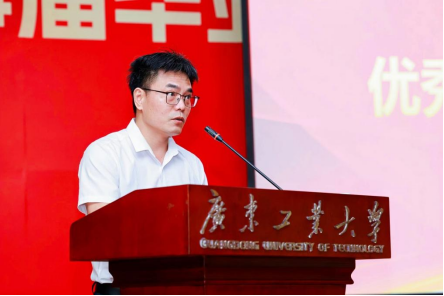 作为教师代表,乔守红教授与同学们进行分享“一个故事、两点启发、三条建议”,和大家一起回顾了2024届同学们美好的大学时光,剖析数学学习研究对个人价值观和思维模式的深刻影响,亲切寄语毕业生坚持学习合作、保持心态平稳、坚持体育锻炼,希望同学们继续传承和发扬广工人的优秀品质,让自己成为一个“情怀高尚、本领过硬、趣味担当”的广工数学人。