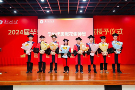 为表达毕业生对学院老师悉心栽培的感激之情,毕业生代表为学院的教师代表献上鲜花,感谢师恩,祝福母校。