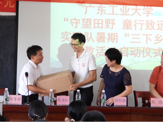 各领导、突击队学生代表发言完毕后,现场举行了广东工业大学对九仕坡宏育学校的赠书仪式。