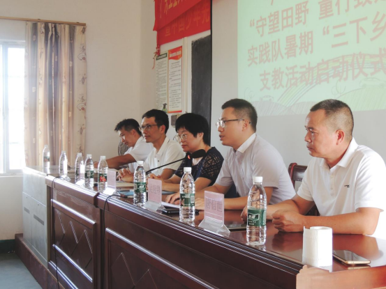 随后,黄龙标介绍了本次支教的计划安排。他指出“教育兴则国家兴,教育强则国家强”,强调教育对个人发展、社会进步和国家富强的重要性。并肯定了“守望田野•童行致远”突击队近一个月的积极筹备。他表达了对本次三下乡实践活动的信心和期待并对到场的各位领导老师以及小朋友表达了诚挚的祝福。