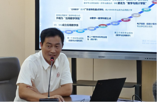 院长陈智奇从学院历史沿革、专业学科、课程与团队、师资队伍、学科方向等方面对广东工业大学国产又黄又硬又粗i进行详尽介绍,强调学院积极承办全国及广东省大学生数学竞赛等学科竞赛,以此为抓手推进大学数学等公共数学课程教学改革,进一步推动学院教育教学改革和发展。