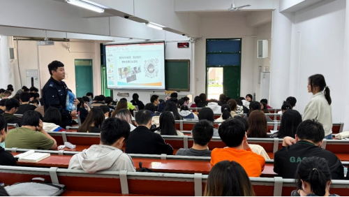 李小鹏警官结合发生在天河区高校校园内的真实案例,“以案说法”详细解读高校学生群体中常见的几种网络诈骗类型,包括冒充公检法诈骗、网络购物诈骗、兼职刷单诈骗、网络裸聊诈骗以及网络钓鱼诈骗等。李警官指出,当前电信网络诈骗呈现多发趋势,犯罪手段持续升级迭代,学生群体面临较高安全风险。他重点提醒要筑牢防范意识,牢记“不轻信、不点击、不下载”的基本准则,避免陷入骗局。李警官还通过互动问答的形式,分享常见诈骗手段的识别要点与基础应对策略,有效提升了参会学生的安全防范素养。