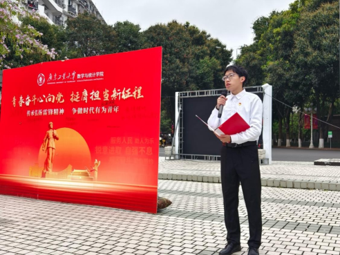 数学与应用数学(创新班)23(1)班的梁盛森同学在国旗下作题为《传承雷锋精神之魂,点亮青春实践之光》的发言,他结合自身的社会实践经历,深刻分享了如何在新时代的背景下,以雷锋精神为指引,积极投身劳动教育和社会实践,践行服务社会的责任。他还倡导同学们积极参与“社区劳动日”活动,从点滴做起,积极参与宿舍清洁、校园环境改善等劳动实践,将劳动教育与社会实践结合起来,内化于心、外化于行,为社会进步贡献青春力量。