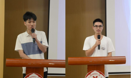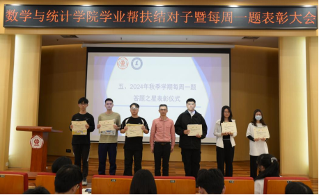 随后,学院党委林逢春副书记为参加学业帮扶计划结对子活动及“每周一题”答题活动中表现突出的学生颁发奖状奖品。其中,获得“最具成效帮扶小组”的2023级信息与计算科学1班张家耀、邱润斌同学结合自身的学习经历与与会观众进行分享交流,帮扶者结合被帮扶人的实际情况以线上线下多种形式制定帮扶计划,表示在结对帮扶的同时也巩固了自身的知识点,提升自我学习能力,收获了友谊;而被帮扶者表示在这个过程中逐步找到适合自己的学习方法,更进一步学会了管理自身的情绪与压力。他们也希望更多同学能够参与到学业帮扶结对子活动中来,一起助力学院学风建设长效发展!