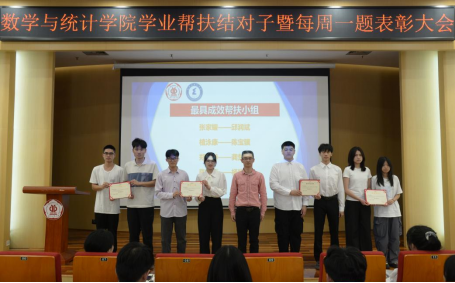 会上,丁蕾婷在对2024-2025年度“‘数’苗+”学业帮扶结对子活动的总结中指出,本次帮扶计划组织了22组共计46名优秀学子及学业后进生建立结对帮扶,经过为期九个月的精准帮扶,帮扶团队通过分享学习经验、错题研讨、定期交流学习情况等,累计形成150余份帮扶记录反馈表,评选出前三名“最具成效帮扶小组”,前三名中帮扶对象平均绩点提升1.01,其中2023级部分同学取得明显进步。更重要的是,帮扶双方在互助过程中实现共同成长,50%以上的帮扶者同步提升了个人绩点与专业排名。