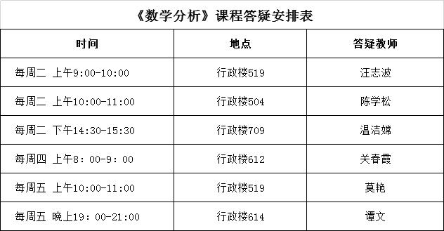 2022年春季学期《数学分析》课程答疑安排