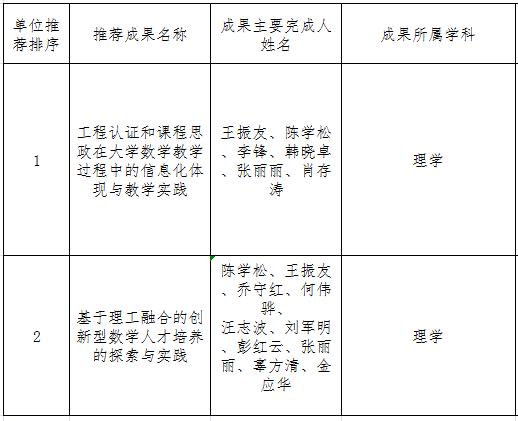 应用数学学院拟推荐参加第十二届校级教学成果奖评审项目的公示